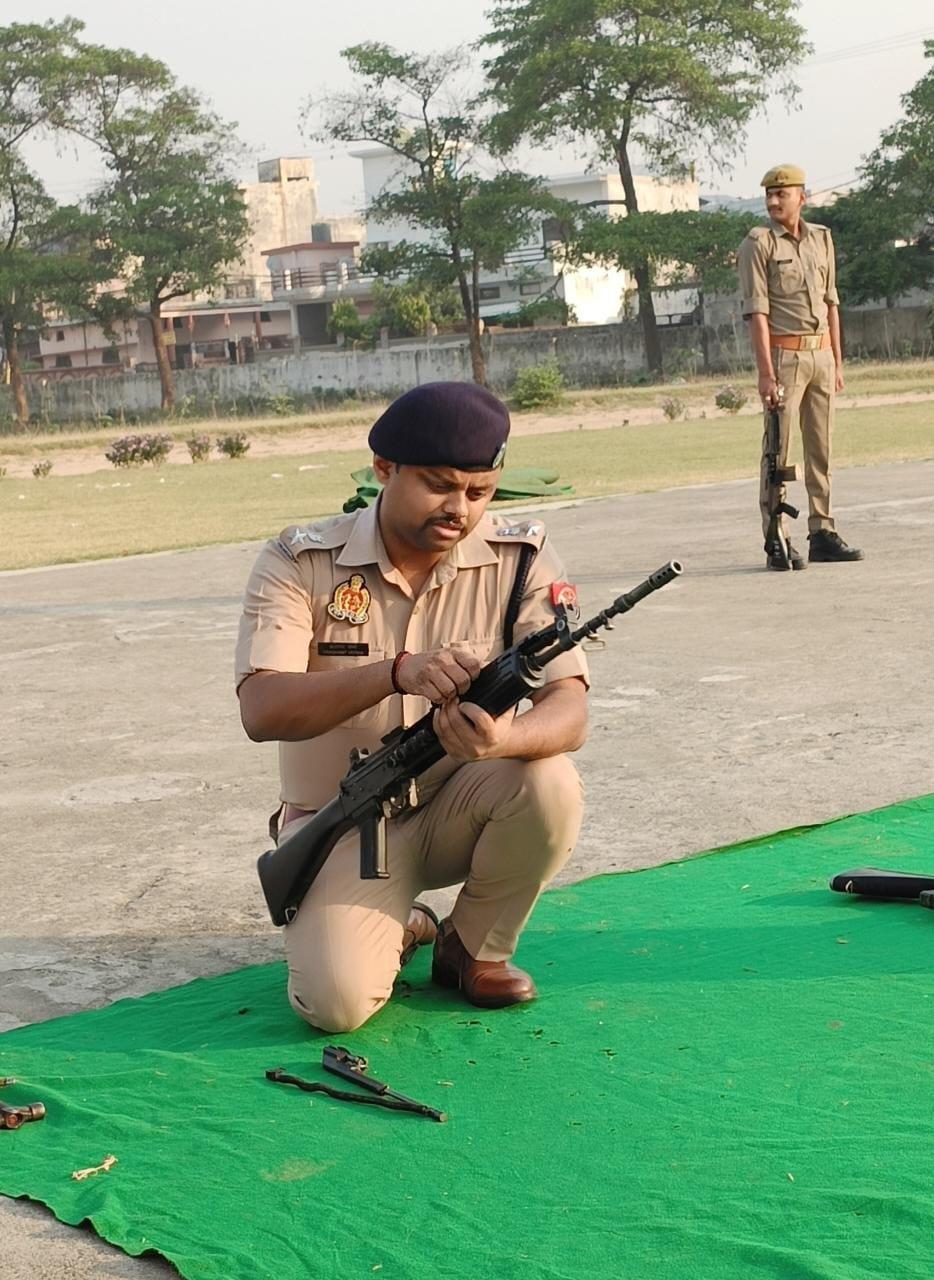 तत्पश्चात पुलिसकर्मियों में शस्त्र दक्षता विकसित करने के लिए महोदय द्वारा स्वयं व कर्मचारियों द्वारा शस्त्रों की हैंडलिंग की गई।