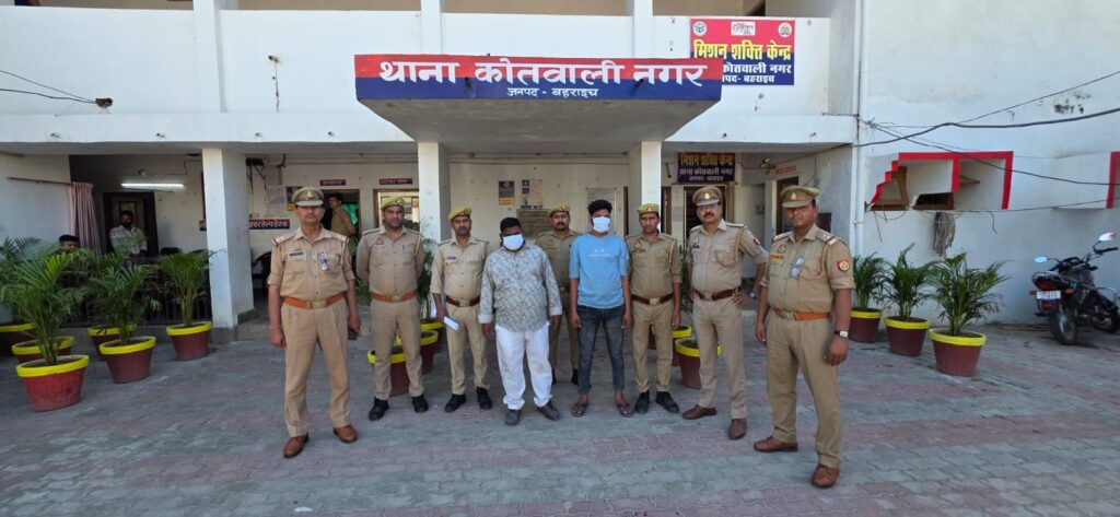बहराइच । पुलिस अधीक्षक जनपद बहराइच द्वारा अपराध के रोकथाम एवं अपराधियों के विरूद्ध चलाये जा रहे अभियान के क्रम मे  अपर पुलिस अधीक्षक नगर व क्षेत्राधिकारी नगर के पर्यवेक्षण में आज दिनांक 05.04.2026 को प्रभारी निरीक्षक थाना कोतवाली नगर मय हमराह उ0नि0 योगेन्द्र सिंह , उ0नि0 अजेश कुमार, उ0नि0 अशोक कुमार, उ0नि0 अमर बहादुर मिश्रा ,कां0 शाहरुख खान, कां0 पंकज गुप्ता, कां0 संदीप पाल द्वारा मु0अ0सं0 74/2026 धारा 191(2)/121(1)/121(2)/132/352/351(3)/125(B)/263(A) बीएनएस व 7 सी0एल0ए0 एक्ट थाना कोतवाली नगर जनपद बहराइच से सम्बन्धित अभियुक्तगण 1. बरकतउल्ला उर्फ डोकोमो पुत्र रफीक उल्ला निवासी किला थाना को0 नगर जनपद बहराइच 2. नजीर अहमद पुत्र रशीद अहमद निवासी किला महाजनी स्कूल थाना को0नगर जनपद बहराइच को त्रिमोही रोड हाइवे से 50 मीटर पहले समय 14.05 बजे गिरफ्तार किया गया । अन्य विधिक कार्यवाही प्रचलित हैं।