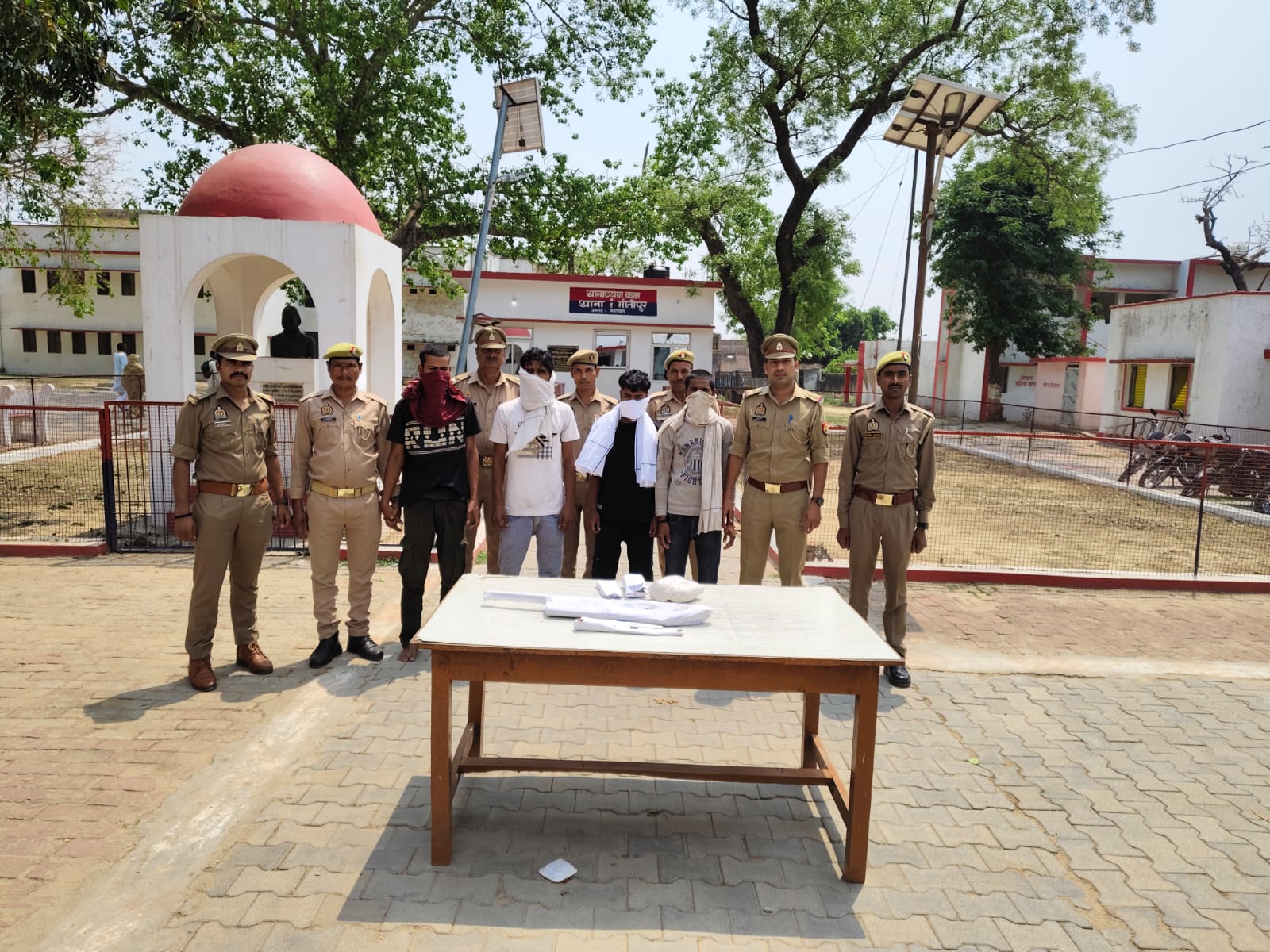 दिनांक 17.04.2025 को थाना क्षेत्र के बहराइच लखीमपुर खीरी मार्ग पर तुलसीरामपुरवा मे स्थित जंगल ढाबा से चेकिंग के दौरान 04 अभियुक्तगण 1.आकाश बाल्मिकी पुत्र सुरेश बाल्मिकी निवासी अजीजनपुरवा दा0 मोतीपुर थाना मोतीपुर जनपद बहराइच उम्र करीब 20 वर्ष 2.मो0 मोहसिन पुत्र शमसुल्ला निवासी कल्लूगौढ़ी दा0 कुड़वा थाना मोतीपुर जनपद बहराइच उम्र करीब 30 वर्ष 3.मो0 कैफ पुत्र मोहर्रम अली निवासी मोतीपुर थाना मोतीपुर जनपद बहराइच उम्र करीब 19 वर्ष 4.मुकद्दर पुत्र मोहर्रम अली निवासी मोतीपुर थाना मोतीपुर जनपद बहराइच उम्र करीब 22 वर्ष को 01 किलो 600 ग्राम चरस व एक अदद देशी (कन्ट्रीमेड ) 12 बोर बन्दूक व 02 अदद चाकू व 376200/- नेपाली करेंसी के साथ गिरफ्तार कर थाना स्थानीय पर मु0अ0सं0 232/25 धारा 8/20 एनडीपीएस एक्ट व 3/4/25 आर्म्स एक्ट पंजीकृत कर अभियुक्तगणो को न्यायिक हिरासत में भेजा गया।
