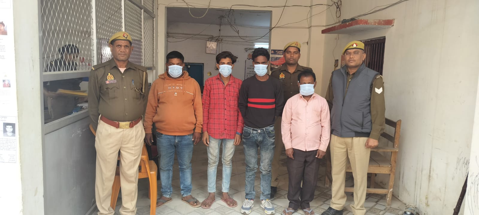बहराइच पुलिस अधीक्षक वृन्दा शुक्ला द्वारा अपराध की रोकथाम व वांछित अपराधियों की गिरफ्तारी हेतु चलाये जा रहे अभियान के तहत अपर पुलिस अधीक्षक नगर बहराइच नगर रामान्द कुशवाहा व क्षेत्राधिकारी नगर रमेश चंद्र पाण्डेय के कुशल निर्देशन मे नि०अ० चंद्रेश कुमार थाना दरगाह शरीफ के उप निरीक्षक दिलीप कुमार उपाध्याय मय हमराही कांस्टेबल ज्वाला पाण्डेय व चीता 12 कर्मचारी कांस्टेबल अरमान अली के थाना हाजा से प्रस्थान कर थाना स्थानीय पर पंजीकृत मु0अ0स0 403/2024 धारा 317 (2) 317 (4) बीएनएस व 3/25 आर्म्स एक्ट के नामित अभियुक्तगण को माल गोदाम रोड रेलवे पटरी के बगल स्थित बाग पर अभियुक्तगण 1 रईस उर्फ जग्गू पुत्र पीरबख्श निवासी मोहल्ला बक्शीपुरा थाना कोतवाली दरगाह शरीफ जनपद बहराइच उम्र लगभग 52 वर्ष 2. राजू बिहारी उर्फ मोहम्मद आरजू पुत्र अब्दुल हयात निवासी ग्राम बूटहा थाना कोतवाली देहात जनपद बहराइच उम्र लगभग 30 वर्ष 3. बृजेश वर्मा उर्फ मनोज पुत्र कन्हैया वर्मा निवासी मोहल्ला बक्शीपुरा निकट धर्मपाल भट्ठा थाना दरगाह शरीफ जनपद बहराइच उम्र लगभग 22 वर्ष 4. फहीम पुत्र इरशाद अली निवासी मोहल्ला नूरुद्दीन चक थाना दरगाह शरीफ जनपद बहराइच उम्र लगभग 24 वर्ष को समय करीब 04.10 बजे हिरासत पुलिस लिया गया तथा आवश्यक विधिक कार्यवाही कर हुए अभियुक्त को माननीय न्यायालय रवाना किया गया।