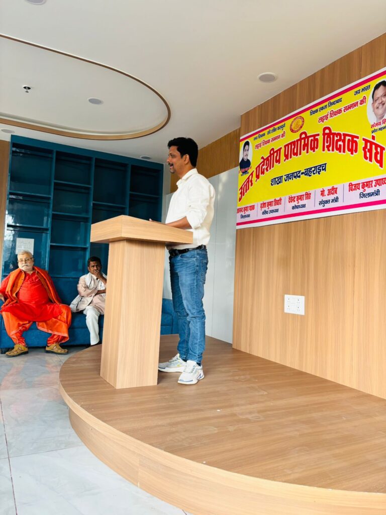 टीचर्स फेडरेशन ऑफ इंडिया के राष्ट्रीय अध्यक्ष डॉ दिनेश चन्द्र शर्मा के निर्देश के क्रम में 4 अप्रैल 2026 को टेट अनिवार्यता के विरोध में होने वाली महारैली एवं धरना प्रदर्शन के लिए रणनीति बनाने हेतु उत्तर प्रदेशीय प्राथमिक शिक्षक संघ जनपद बहराइच की संयुक्त कार्यसमिति की बैठक का आयोजन जिलाध्यक्ष आनंद कुमार पाठक जी की अध्यक्षता में रेनबो आडोटोरियम में किया गया।