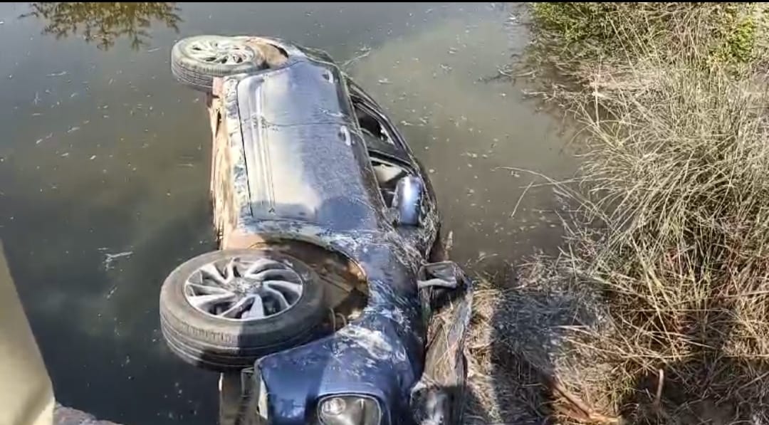 तेज रफ्तार कार अनियंत्रित होकर बंबे में गिरी,मची चीख पुकार,कार सवार पांच लोग हुए घायल,गम्भीर रूप से दो लोग हुए घायल हायर सेंटर रैफर