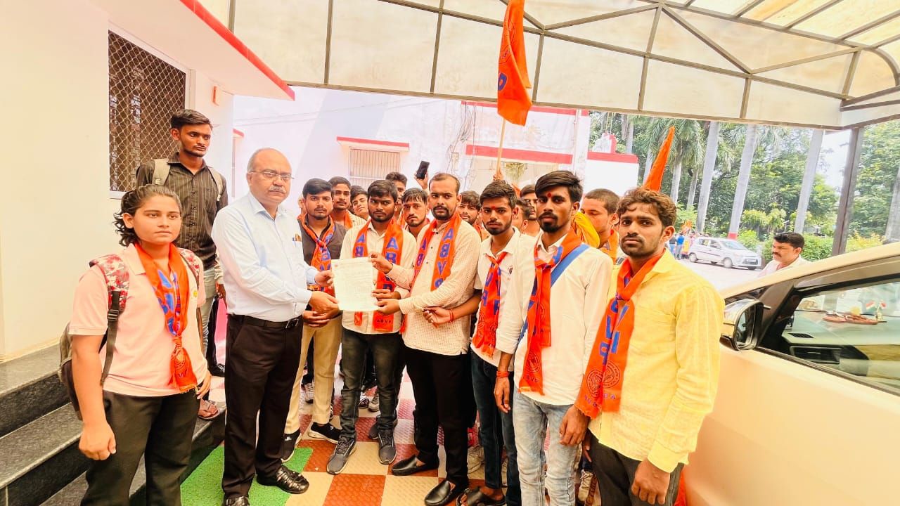 ” ज्ञापन सौंपने के दौरान जिला संगठन मंत्री हरिओम शर्मा, जिला संयोजक मनीष सिंह, जिला सहसंयोजक सूरज चतुर्वेदी, विभाग संयोजक आदर्श तिवारी, नगर मंत्री अमरेश प्रजापति, सहदेव तिवारी, अशोक पांडेय, अजय पांडेय, शशि शुक्ला, दीपक कनौजिया, मणि सिंह, जय, अभिषेक सिंह, राम गोविंद, सूरज शर्मा, विजय मिश्रा, पद्मिनी यादव सहित अन्य कार्यकर्ता भी उपस्थित रहे।