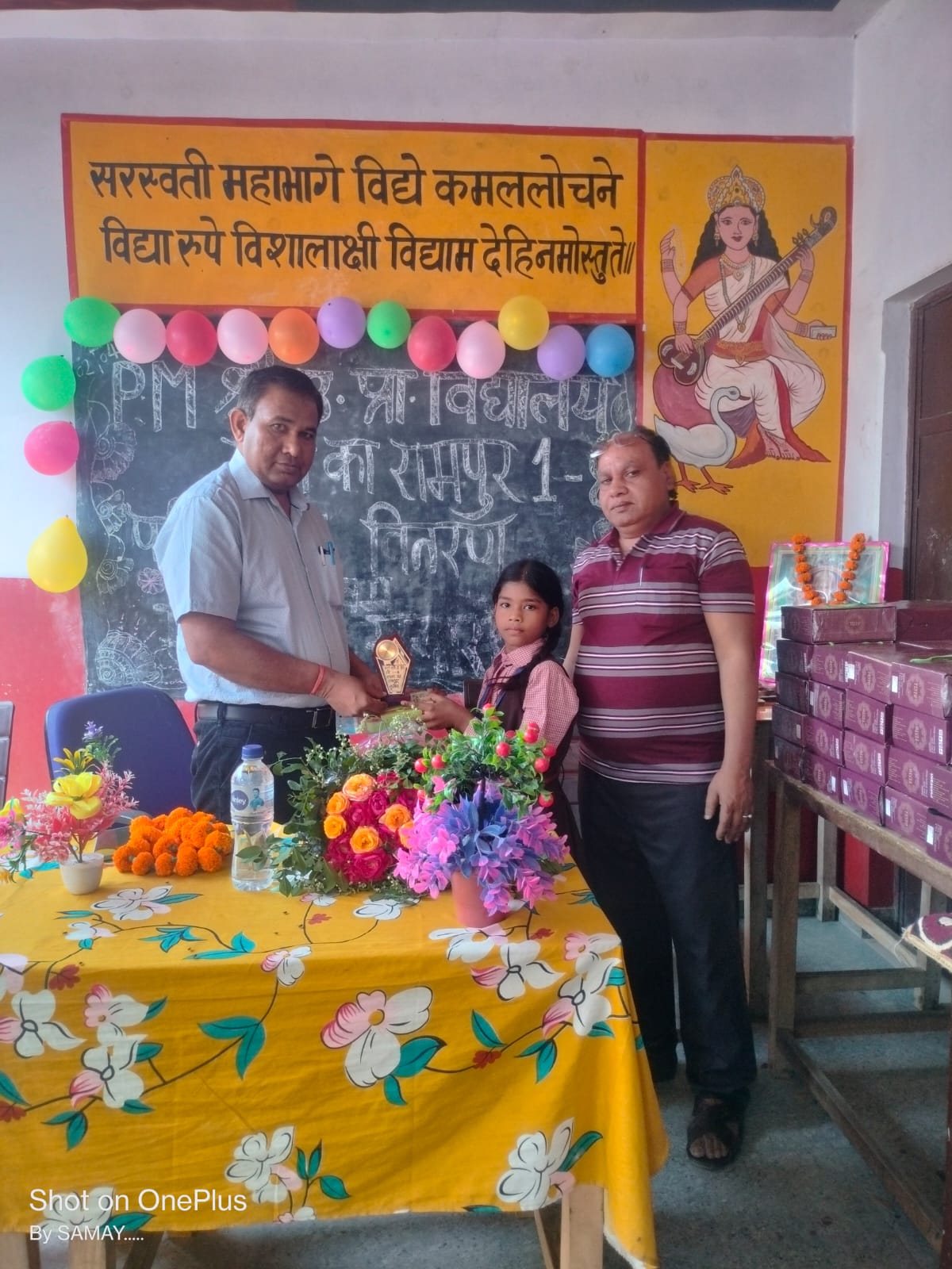 खंड शिक्षाधिकारी ने माँ सरस्वती के चित्र पर किया दीप प्रजवलित. वच्चों को शील्ड देकर किया सम्मानित!अलीगंज। अलीगंज सर्किल के कस्वा राजा का रामपुर स्थति पीएम श्री विद्यालय उच्च प्राथमिक विद्यालय राजा का रामपुर में वार्षिक परीक्षा फल वितरण कार्यक्रम संपन्न हुआ। साथ ही राष्ट्रीय अविष्कार योजना के तहत परीक्षा में पास हुए बच्चों को शील्ड देकर सम्मानित किया वही कक्षा 8 के बच्चों का विदाई समारोह किया गया गया वही कक्षा एक से आठ तक के बच्चे जो वार्षिक परीक्षा में प्रथम द्वितीय व तृतीय स्थान पाने वालों को को शील्ड व प्रतीक चिन्ह भेंट किये गए.कार्यक्रम का शुभारंभ अलीगंज खंड शिक्षा अधिकारी हरिकिशोर सिंह ने माँ वीणा-वादिनी का माल्यार्पण दीप प्रजवलित करके किया गया। कार्यक्रम के इस अवसर पर विद्यालय के छात्र छात्राओं द्वारा विभिन्न मनमोहक सांस्कृतिक कार्यक्रम प्रस्तुत किए गए। विद्यालय की इंचार्ज प्रधाध्यापिका मंजू लता वर्मा व प्रीती पाण्डेय ने अपने संबोधन में विद्यालय की ओर से शिक्षा के क्षेत्र में किए गए सतत प्रयासों का विवेचन करते हुए आए हुए समस्त बच्चों को शुभकामनाएं दी।वही खंड शिक्षा अधिकारी हरिकिशोर सिँह ने संबोधन में कहा कि शिक्षा में गुणवत्ता बनाए रखने के लिए तथा छात्रों को समाज का कुशल मार्गदर्शक बनाने के लिए विद्यालय व अभिभावक दोनों का योगदान होना अति आवश्यक है। साथ ही विद्यालय प्रबंधन की ओर से बनाई गई नई नीतियों के बारे में भी अभिभावकों को अवगत कराया।विद्यालय के प्रबंध तंत्र समिति द्वारा समस्त कक्षाओं के सभी वर्गों के प्रथम द्वितीय तथा तृतीय श्रेणी के छात्रों को शील्ड व प्रतीक चिन्ह भेंट करके उनको सम्मानित किया.दिलीप सिंह मंडल ब्यूरो एटा उत्तर प्रदेश