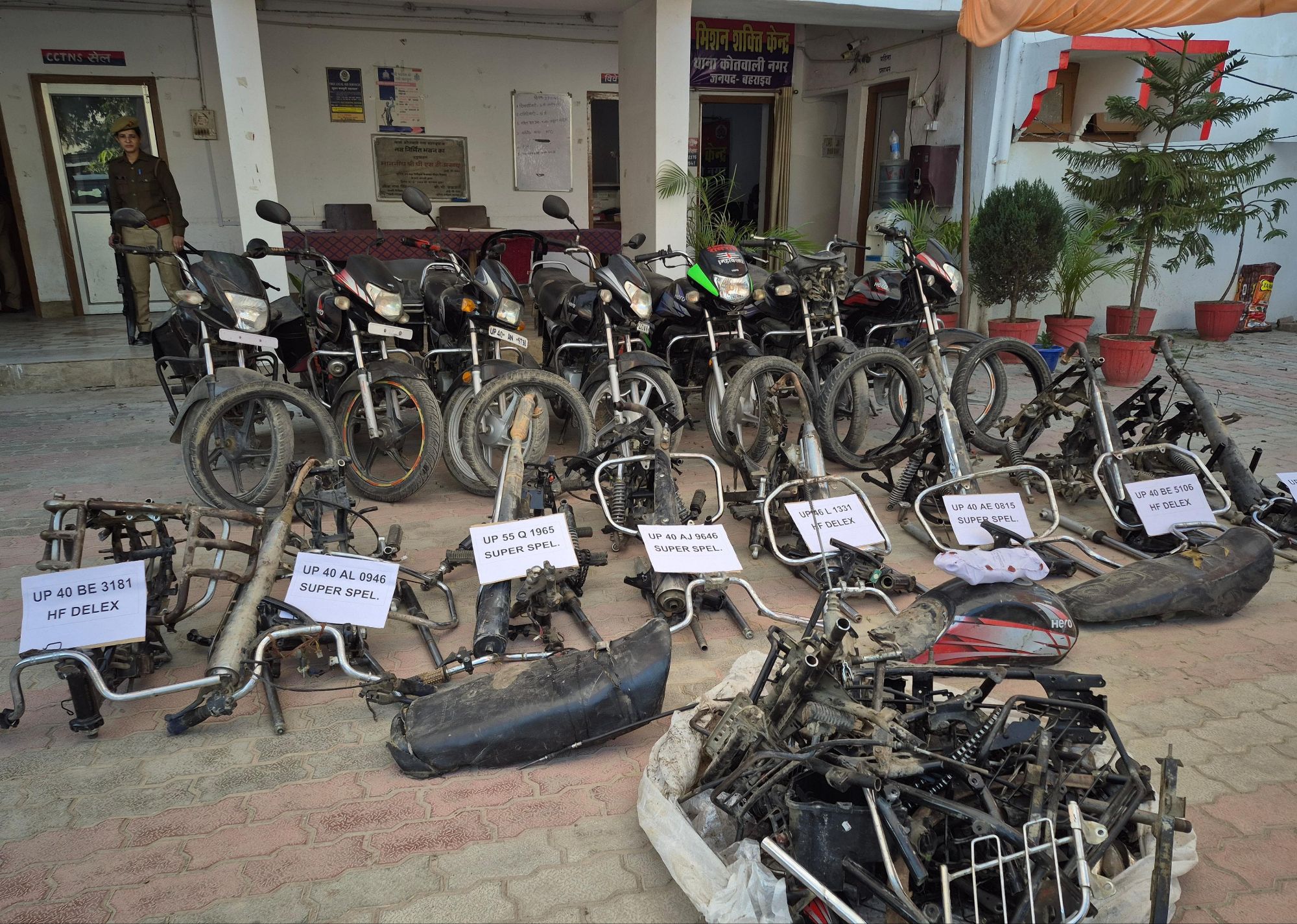 बहराइच चोरी की 07 मोटरसाइकिल व 08 मोटरसाइकिल की चेचिस सहित कलपुर्जे बरामद