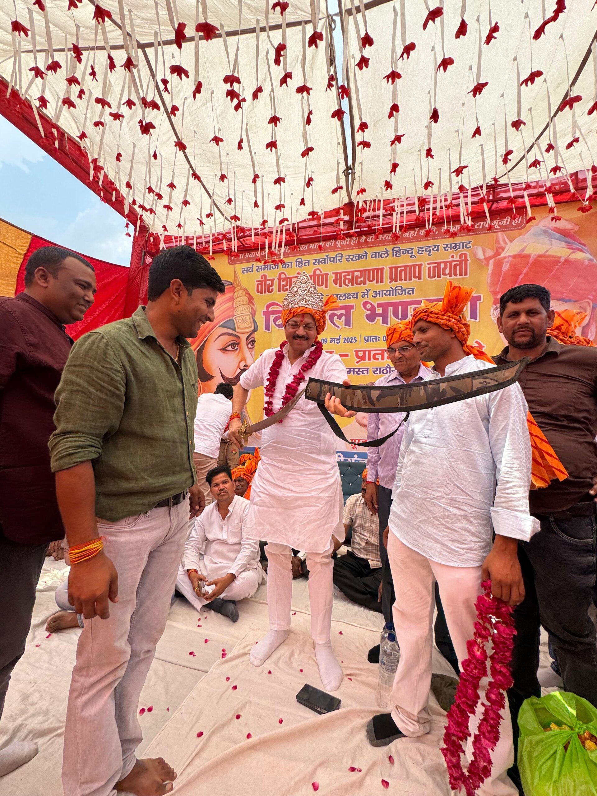 वही लोगों ने अलीगंज विधायक सत्यपाल सिंह राठौर को तलवार भेंट की. विधायक ने कहा महाराणा प्रताप के हम लोग त्याग बलिदान को याद करते हैं. उन्होंने अपने जीवन में लोगों को कठिन समय किस किस तरह जीवन जिया इतिहास उठाकर देखो. हमें उनके बताये मार्ग पर चलना चाहिए. इस मौके पर कार्यक्रम आयोजक मोहन राठौर रामबाबू सिंह गौरव राठौर सुमित राठौर संजू राठर राजकुमार सिंह राठौर,प्रधान ओमवीर सिंह राठौर, पंकज तोमर, विक्रम सिंह तोमर सप्पू राहुल तोमर चिक्कू, शंकर राठौर, सचिन चौहान आदि लोग मौजूद रहे।