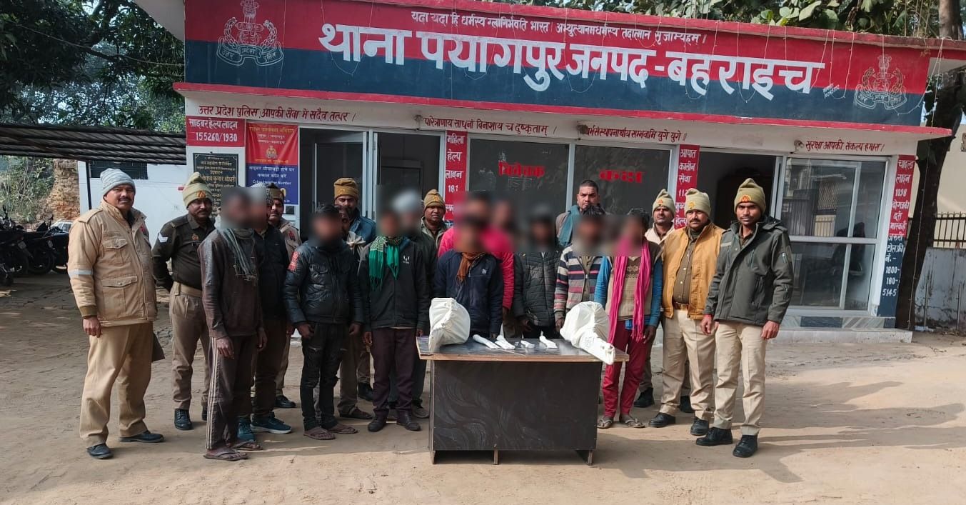 पुलिस अधीक्षक जनपद बहराइच द्वारा रोकथाम जुर्म जरायम एवं क्षेत्र मे शान्ति व्यवस्था कायम हेतु चलाये जा रहे अभियान के क्रम में अपर पुलिस अधीक्षक (नगर) व क्षेत्राधिकारी पयागपुर के निर्देशन में थानाध्यक्ष के नेतृत्व में गठित पुलिस टीम द्वारा आज दिनांक 07.01.2026 को 11 नफर अभियुक्त थाना पयागपुर क्षेत्र के नहर पर पटरी के किनारे ग्राम पैडी मे अभियुक्तगण द्वारा चोरी से अवैध लकडी कटान बिना परमिट के काटने पर समय प्रातः 5.00 बजे 18 बोटा शीशम लकडी व लकडी काटने के सामान के से गिरफ्तार कर थाना स्थानीय पर लाकर मु0अ0सं0 13/2026 धारा 31, 41, 42 भारतीय वन अधि0, 4/10 ग्रामीण वन संरक्षण अधि0, 3/28 उ0प्र0 अभिवहन नियमावली व 303(2), 317(2) बीएनएस थाना पयागपुर जनपद बहराइच अभियोग पंजीकृत किया गया । अग्रिम विधिक कार्यवाही हेतु अभियुक्तगणों को माननीय न्यायालय रवाना किया गया ।