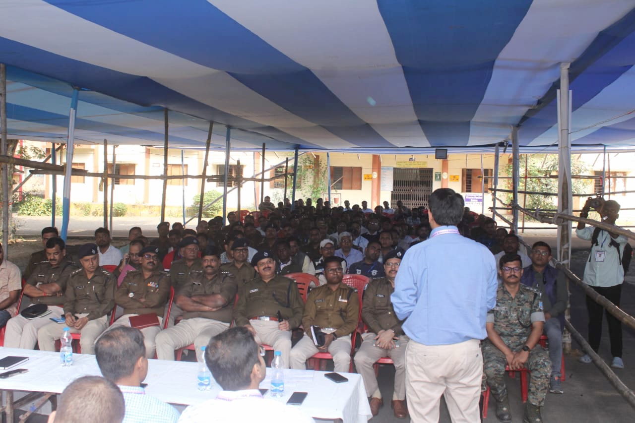 झारखंड, पूर्वी सिंहभूम। जिला निर्वाचन पदाधिकारी अनन्य मित्तल एवं वरीय पुलिस अधीक्षक किशोर कौशल द्वारा कॉपरेटिव कॉलेज परिसर में मतगणना दिवस को लेकर दण्डाधिकारी व पुलिस पदाधिकारियों की ब्रीफिंग की गई। प्रतिनियुक्त सभी दण्डाधिकारियों व पुलिस पदाधिकारियों को निदेश दिया गया कि वे बिना प्रवेश पत्र के तथा मोबाईल फोन, इलेक्ट्रॉनिक गैजेट या किसी ज्वलनशील पदार्थ के साथ किसी भी परिस्थिति में किसी भी व्यक्ति को मतगणना हॉल के अन्दर प्रवेश नहीं करने देंगे।