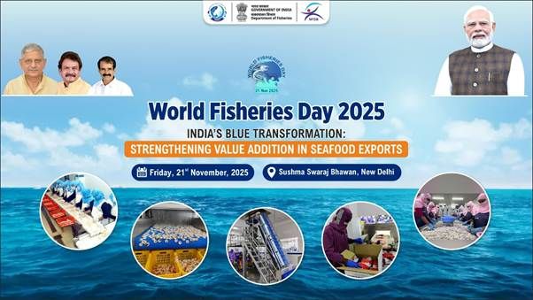 मत्स्य पालन : पशुपालन एवं डेयरी मंत्रालय के अंतर्गत संचालित मत्स्य पालन विभाग 21 नवंबर 2025 को नई दिल्ली के सुषमा स्वराज भवन में विश्व मत्स्य दिवस 2025 मनाएगा। इस वर्ष का ध्येय वाक्य है “भारत की जलजनित अर्थव्यवस्था में बदलाव: समुद्री खाद्य वस्तुओं के निर्यात में मूल्यवर्धन”।