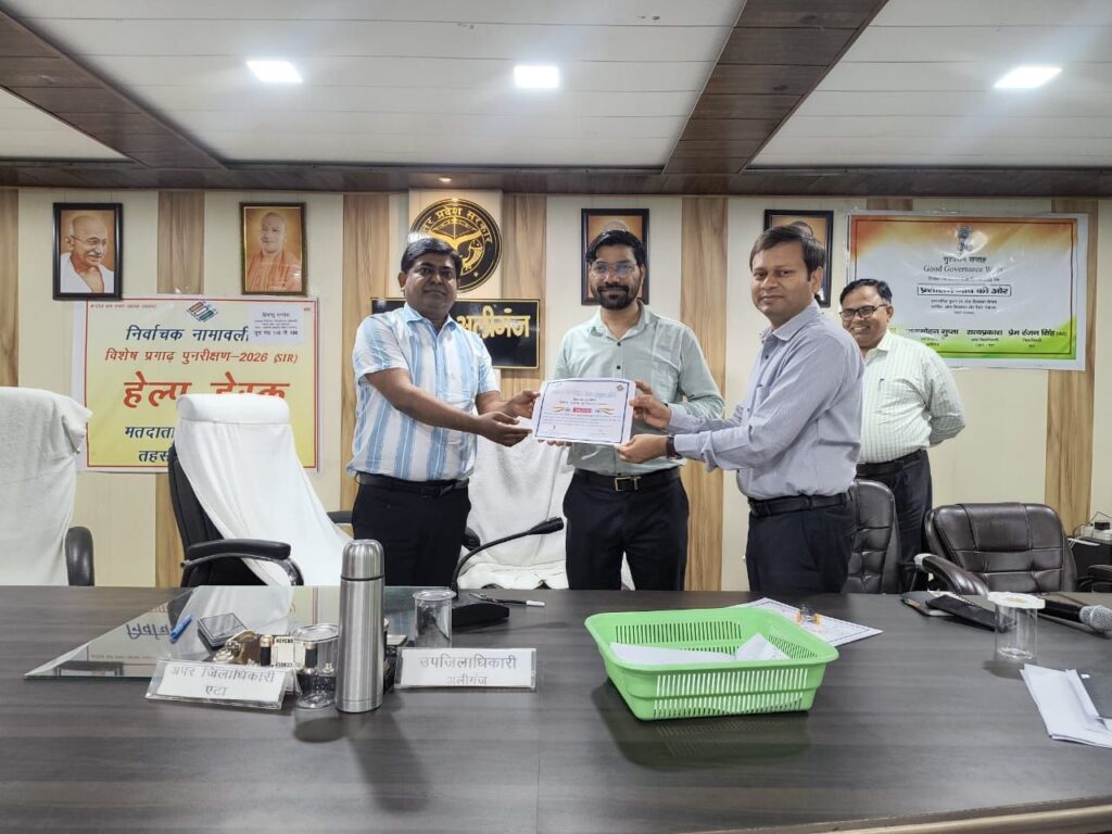 अलीगंज विधानसभा में एस आईआर का कार्य समय से पूरा होने पर जिला प्रशासन ने किया सम्मानित