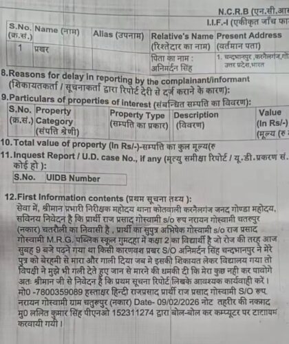 घर लौटने पर बच्चे की हालत देखकर परिजन दंग रह गए। शरीर पर डंडों के गहरे निशान और सूजे हुए पैर देखकर तुरंत इलाज कराया गया। इसके बाद पिता राजप्रसाद गोस्वामी ने कर्नलगंज कोतवाली में शिकायत दर्ज कराई, जिस पर पुलिस ने मुकदमा दर्ज कर जांच शुरू कर दी है।