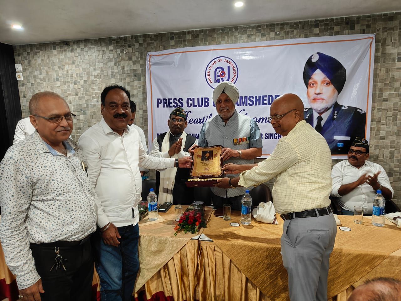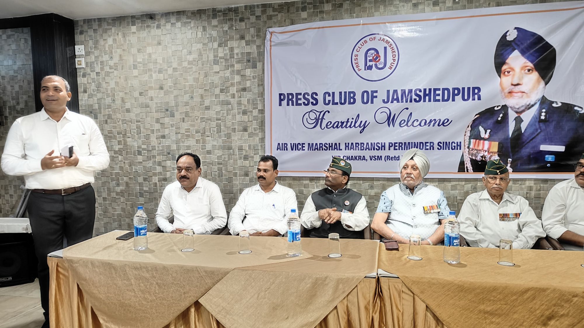 प्रेस क्लब ऑफ जमशेदपुर की ओर से मीडिया और फोर्स विषय पर कार्यक्रम के आयोजन में शिरकत किए पूर्व विंग कमांडर हरबंस परमिंदर सिंह।