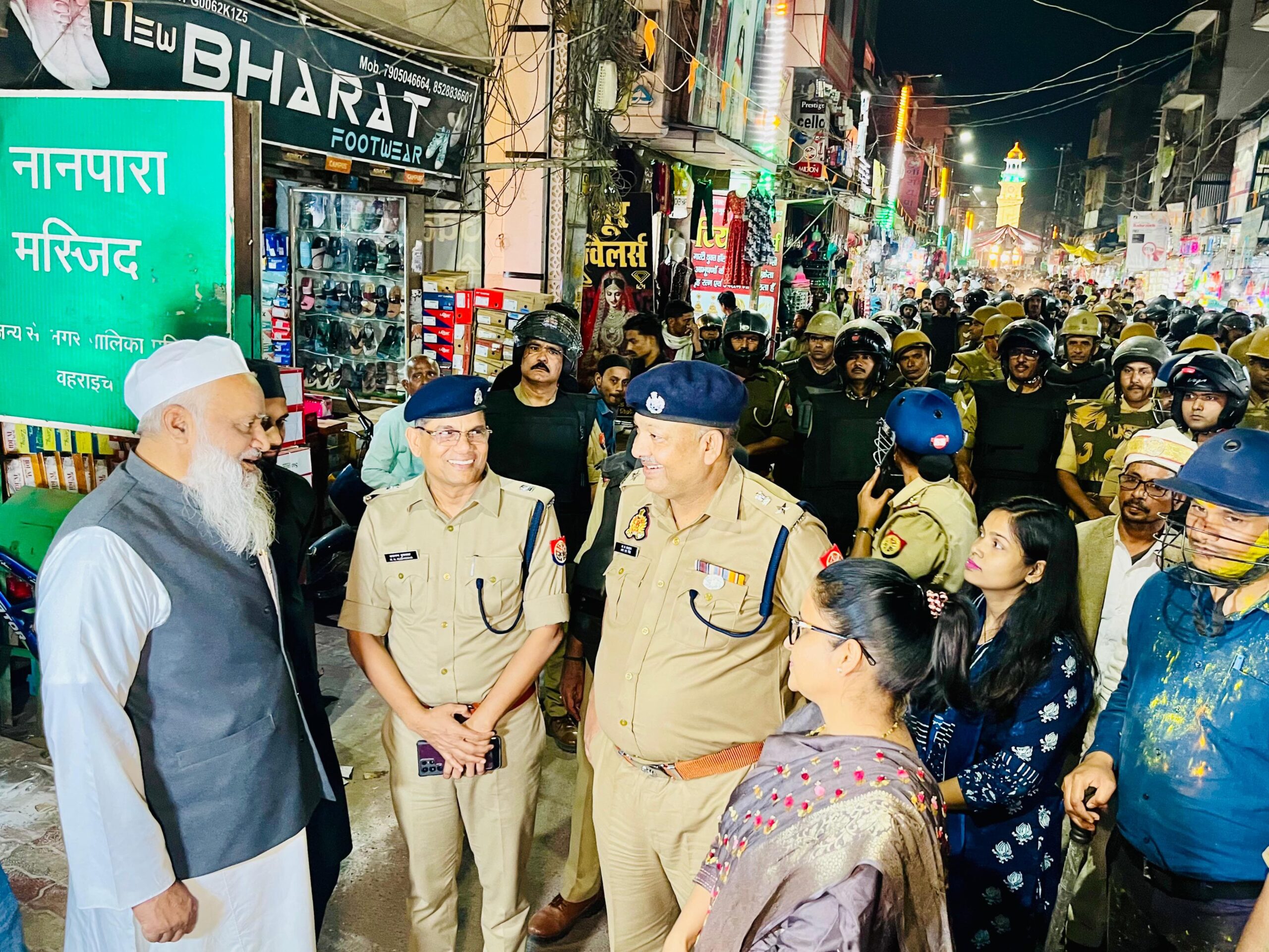 पैदल गस्त के दौरान आम जन को आश्वस्त कराया जा रहा है कि बहराइच पुलिस शांति, सौहार्द एवं कानून व्यवस्था बनाए रखने के लिए सदैव कटिबद्ध है।इस दौरान अपर पुलिस अधीक्षक नगर, सिटी मजिस्ट्रेट, क्षेत्राधिकारी नगर, क्षेत्राधिकारी लाइन, सर्किल नगर के समस्त थानों का पुलिस बल मौजूद रहा।
