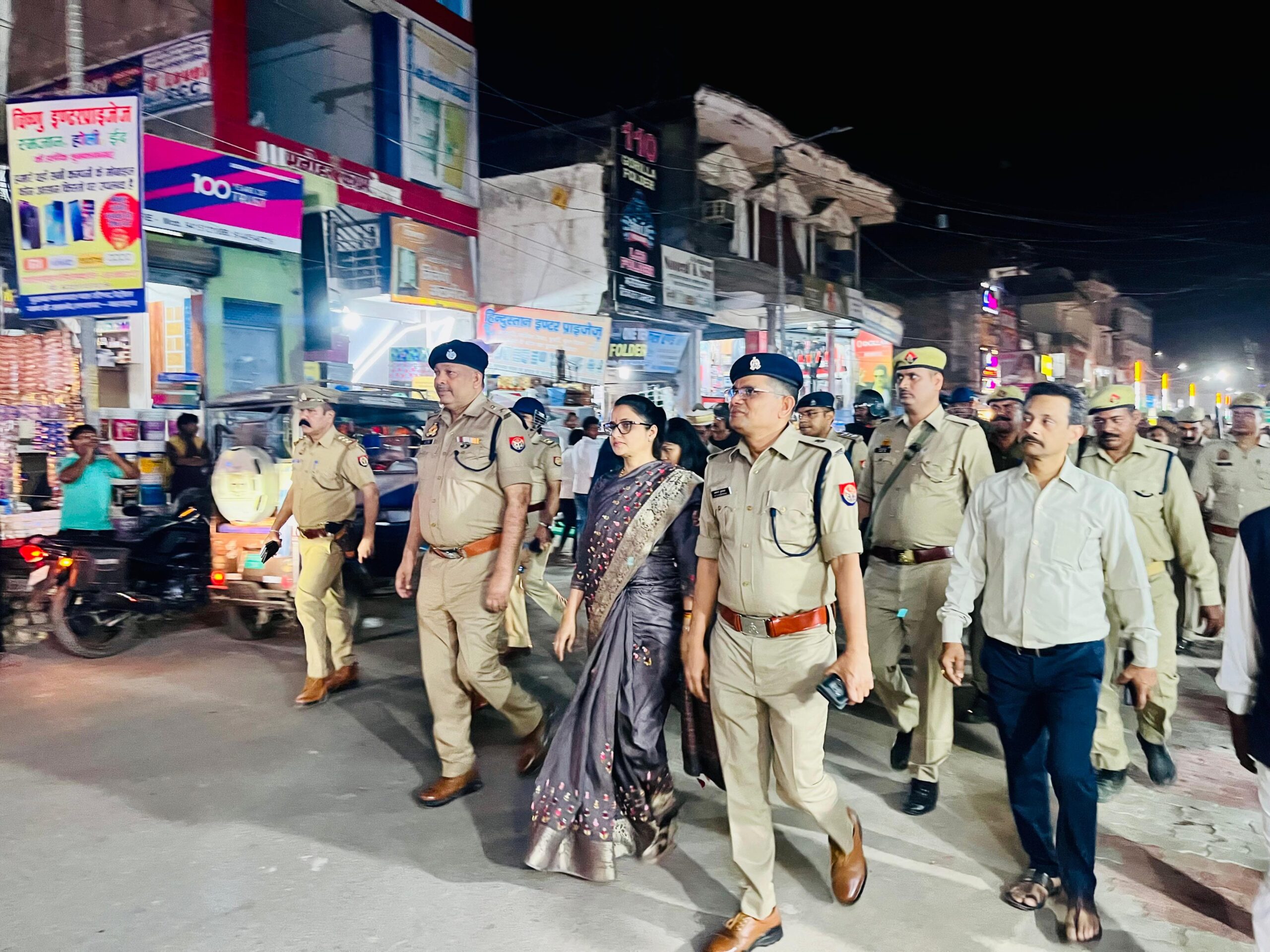 आज दिनांक 12.03.2024 को होली त्यौहार व रमजान माह के दृष्टिगत जनपद में शांति, सुरक्षा एवं कानून व्यवस्था बनाए रखने तथा त्यौहारों को सकुशल सौहार्दपूर्ण वातावरण में सम्पन्न कराने हेतु जिलाधिकारी मोनिका रानी व पुलिस अधीक्षक द्वारा पुलिस बल के साथ नगर क्षेत्र के मिश्रित आबादी वाले क्षेत्रों में सतर्क दृष्टि बनाए रखते हुए प्रमुख मार्गो घंटाघर से बस अड्डा से छावनी चौराहा होते हुए अग्रसेन चौराहा से पानी टंकी चौराहा होते हुए समस्त शहर क्षेत्र का पैदल गश्त/फ्लैग मार्च किया गया।