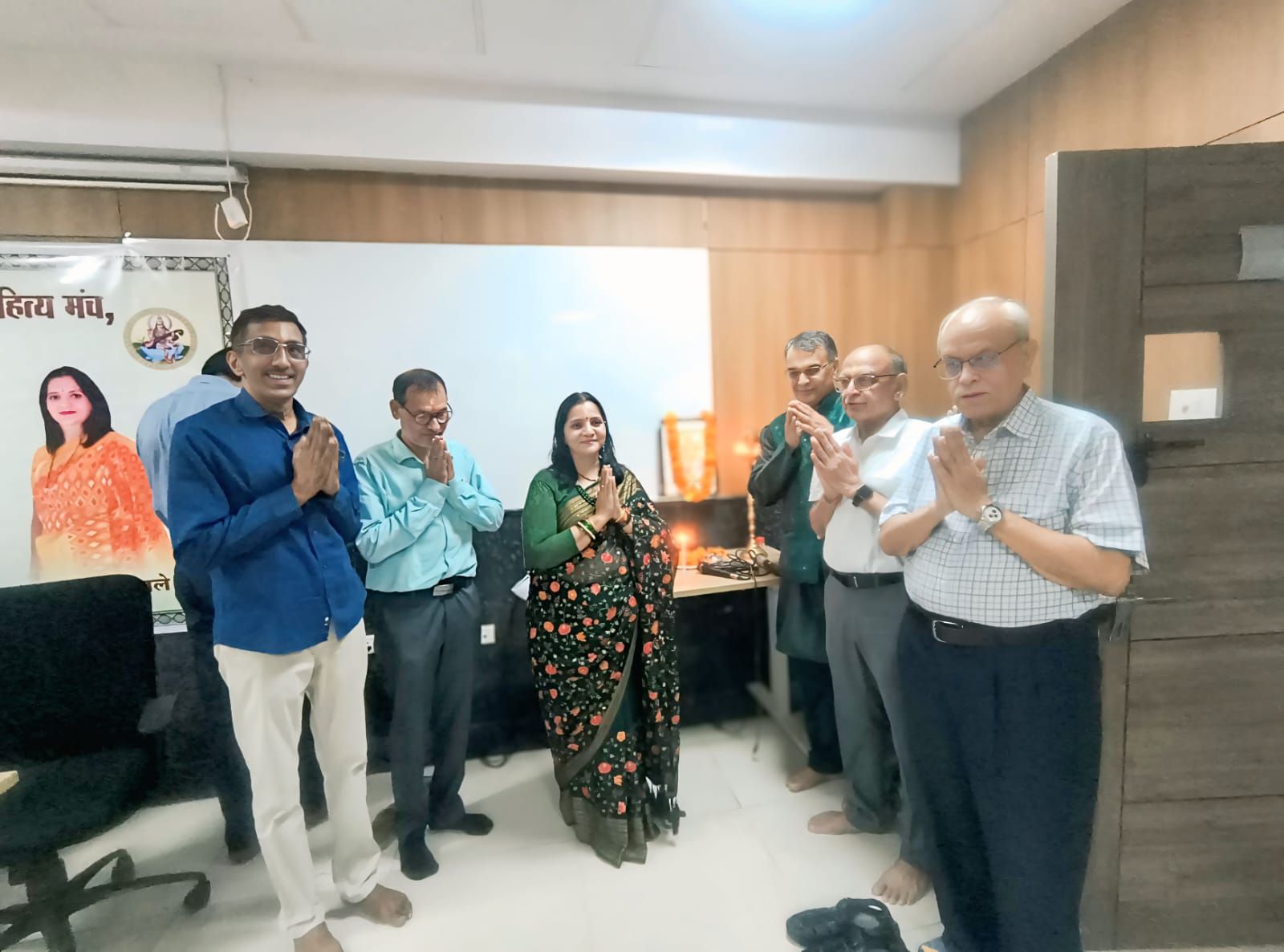 सर्वप्रथम डॉ.कीर्ति काले,प्रेम बिहारी मिश्र,श्रीकांत काले, रवीन्द्र भूषण और ओमप्रकाश कल्याणे ने माँ सरस्वती के दीप प्रज्वलन किया और कुसुमलता सिंह ने सरस्वती वंदना की।