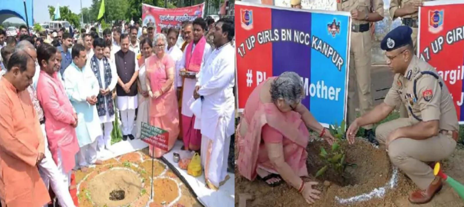 कानपुर में एक पौधा मां के नाम अभियान की शुरुआत में मंत्री , नेताओं और अफसरों ने रोपे पौधे