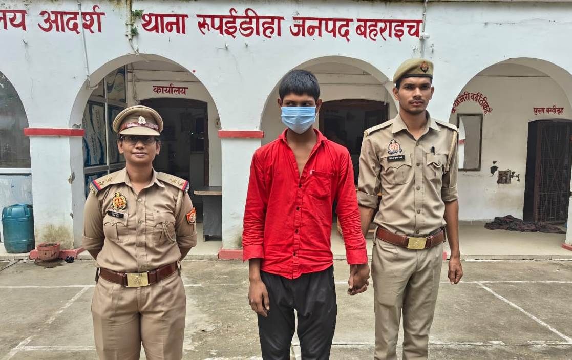 थाना रूपईडीहा पर पंजीकृत मु0अ0स0 263/2025 धारा 137(2) 87 BNS से संबंधित वाँछित अभियुक्त अरुण उर्फ श्रवण चौहान पुत्र ठुर्री चौहान निवासी ग्राम गुलरिया गंगापुर थाना नवाबगंज जनपद बहराइच उम्र करीब 18 वर्ष को मुखबिर खास की सूचना पर आज दिनांक 07.10.2025 को समय 09.05 बजे निबिया तालाब के पास थाना रूपईडीहा से गिरफ्तार किया गया । बाद विधिक कार्यवाही अभियुक्त अरुण उर्फ श्रवण चौहान उपरोक्त को पेशी हेतु माननीय न्यायालय सदर बहराइच रवाना किया गया l