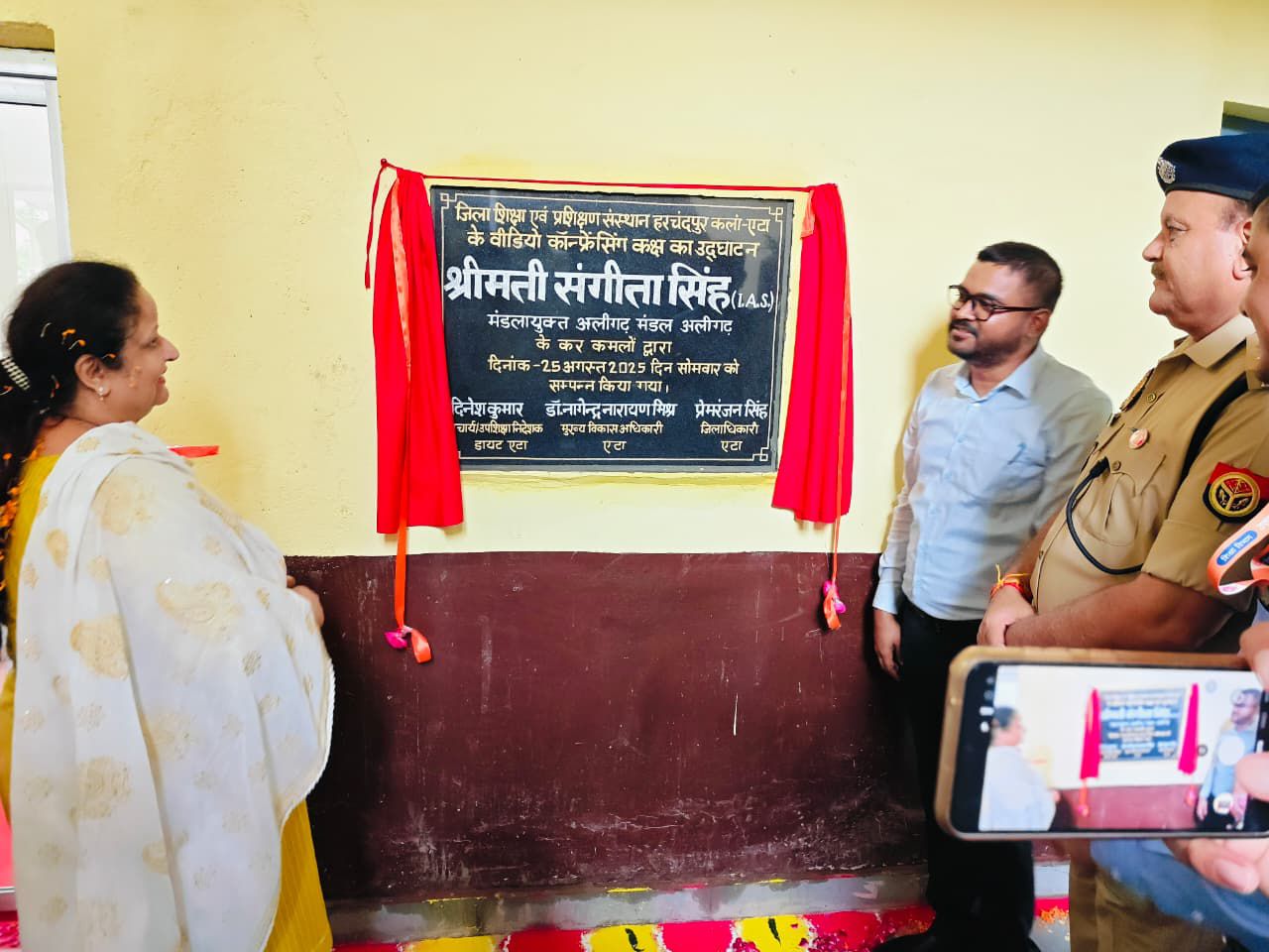 एटा शासन द्वारा नामित नोडल अधिकारी/मण्डलायुक्त महोदया श्रीमती संगीता सिंह ने सोमवार को अपने भ्रमण कार्यक्रम के अंतर्गत सर्वप्रथम जिला शिक्षा एवं प्रशिक्षण संस्थान (डायट) में नवनिर्मित वीडियो कॉन्फ्रेंसिंग कक्ष का लोकार्पण किया।