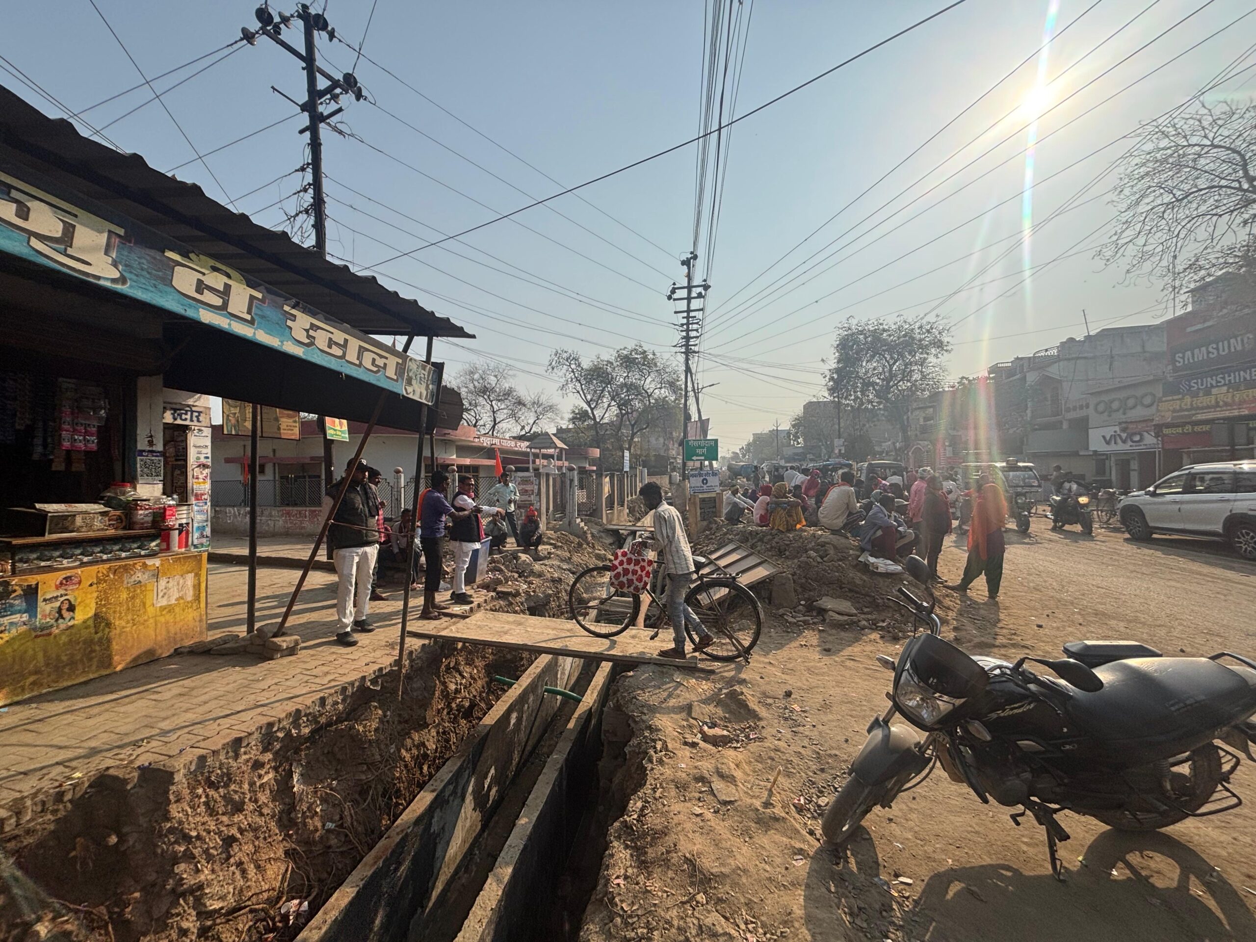 कार्यदायी संस्था के लापरवाही से नाली निर्माण को लेकर नगरवासियों में आक्रोश