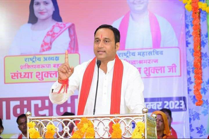 जेपी को जमकर कोसा। मध्यप्रदेश को नशेड़ी बनाया जा रहा है एवं आये दिन गौमाता को कत्ल खाने भेजा जा रहा है। सरकारों द्वारा भ्रष्टाचार पर एवं गौ माता पर कोई रॉक नहीं लगाई जा रही है। राष्ट्रीय अध्यक्ष संध्या शुक्ला जी ने अन्यपार्टियों के कामकाज को लेकर विरोध किया। लाडली बहन योजना एवं अन्य योजनाओं का विरोध किया।