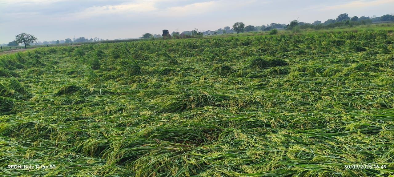 किसान दशरथ ने बताया की धान की पकी खड़ी फसल हवा और बारिश के चलते बिछ गई जिससे धान तकरीबन 20% तक पूरा नष्ट हो जाएगा। हम किसानों को तो कुदरत की मार झेलनी पडती है।