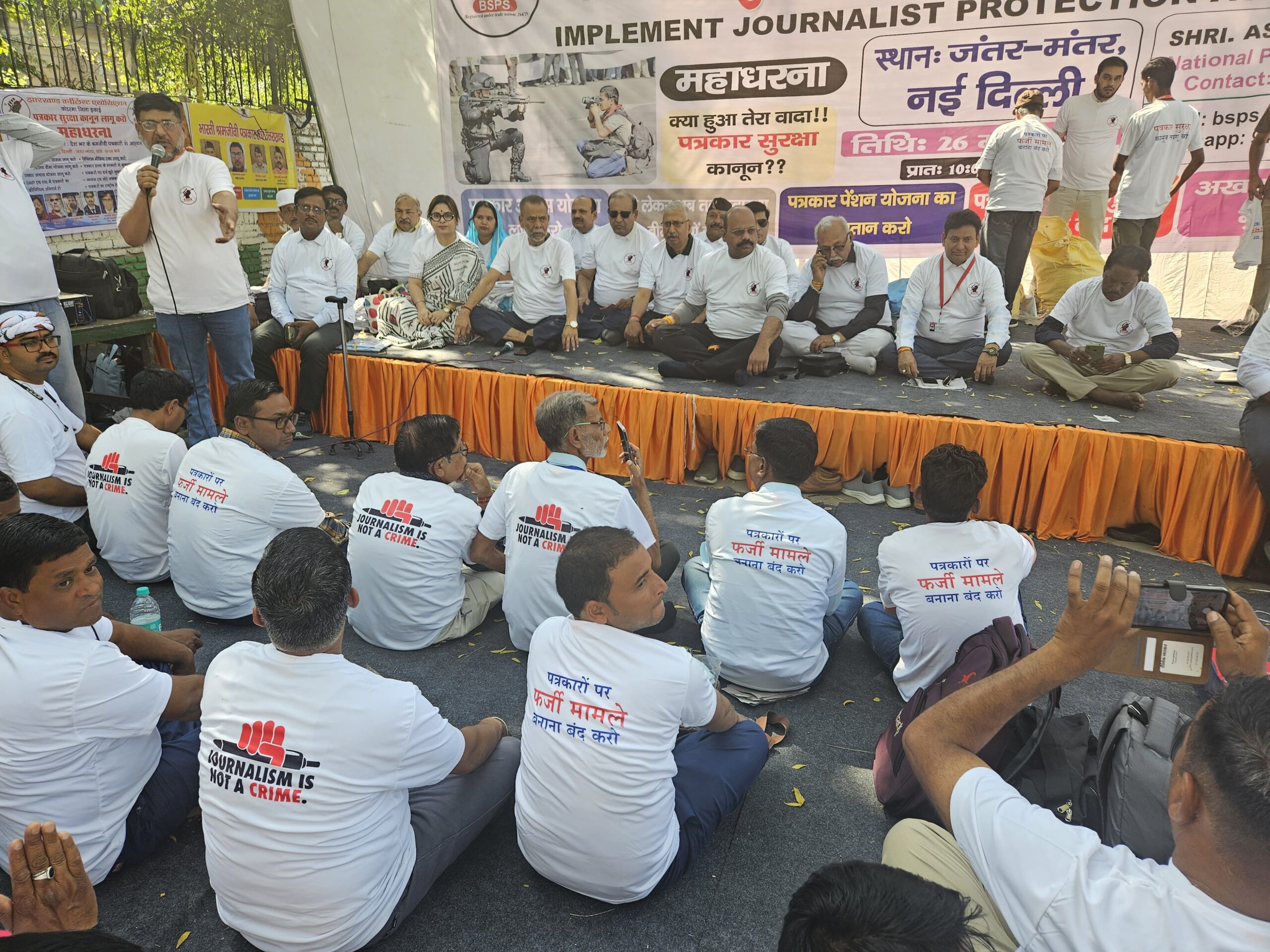 इस महाधरना को भारती श्रमजीवी पत्रकार संघ के राष्ट्रीय महासचिव शाहनवाज हसन, उपाध्यक्ष आंध्र प्रदेश के राघवेंद्र मिश्रा, संगठन सचिव गिरधर शर्मा(उत्तराखंड ) राष्ट्रीय सचिव डॉ. नवीन आनंद जोशी(मध्य प्रदेश) चंदन मिश्रा( झारखंड ),राष्ट्रीय कोषाध्यक्ष श्रीमती एस.एस.नसरीन (पश्चिम बंगाल)राष्ट्रीय प्रवक्ता श्रीमती इंदु बंसल (हरियाणा), तमिलनाडु के पी रविंद्र चंद्रन सहित विभिन्न राज्यों के पदाधिकारियों ने संबोधित किया।