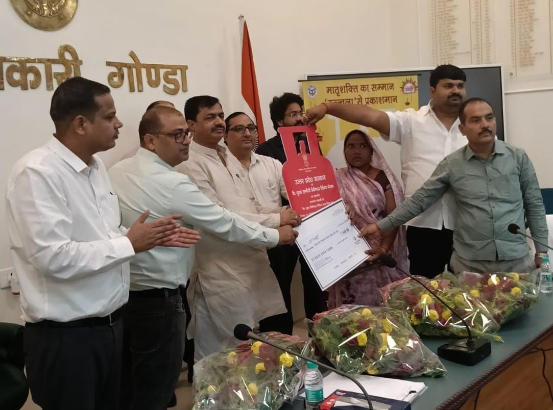 उक्त क्रम में जनपद गोंडा के कलेक्ट्रेट सभागार में एक भव्य कार्यक्रम का आयोजन किया गया,जिसमें उज्ज्वला योजना के अंतर्गत चयनित लाभार्थियों में 10 लाभार्थियों को 569.50 रूपए की राशि का सब्सिडी प्रतीकात्मक चेक वितरित किया गया।