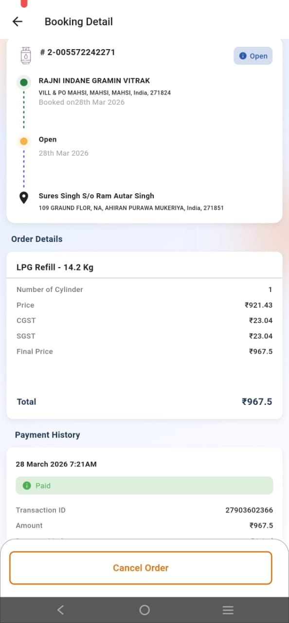 मामला बहराइच जनपद के महसी क्षेत्र स्थित रजनी इंडेन ग्रामीण वितरक (Rajni Indane Gramin Vitrak) से जुड़ा है, जहां एक उपभोक्ता ने 28 मार्च 2026 को गैस सिलेंडर बुक कराया और ₹967.5 का भुगतान भी कर दिया, लेकिन कई दिन बीत जाने के बाद भी सिलेंडर की डिलीवरी नहीं हो सकी।