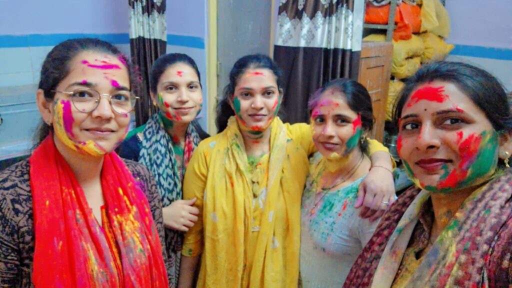 अलीगंज | सामुदायिक स्वास्थ्य केंद्र अलीगंज परिसर में होली का पर्व उत्साह और सौहार्द के साथ मनाया गया। ड्यूटी के बीच समय निकालकर परिचारिकाओं एवं अन्य स्वास्थ्यकर्मियों ने एक-दूसरे को अबीर-गुलाल लगाकर गले मिलते हुए शुभकामनाएं दीं।