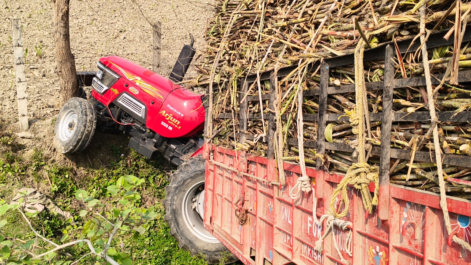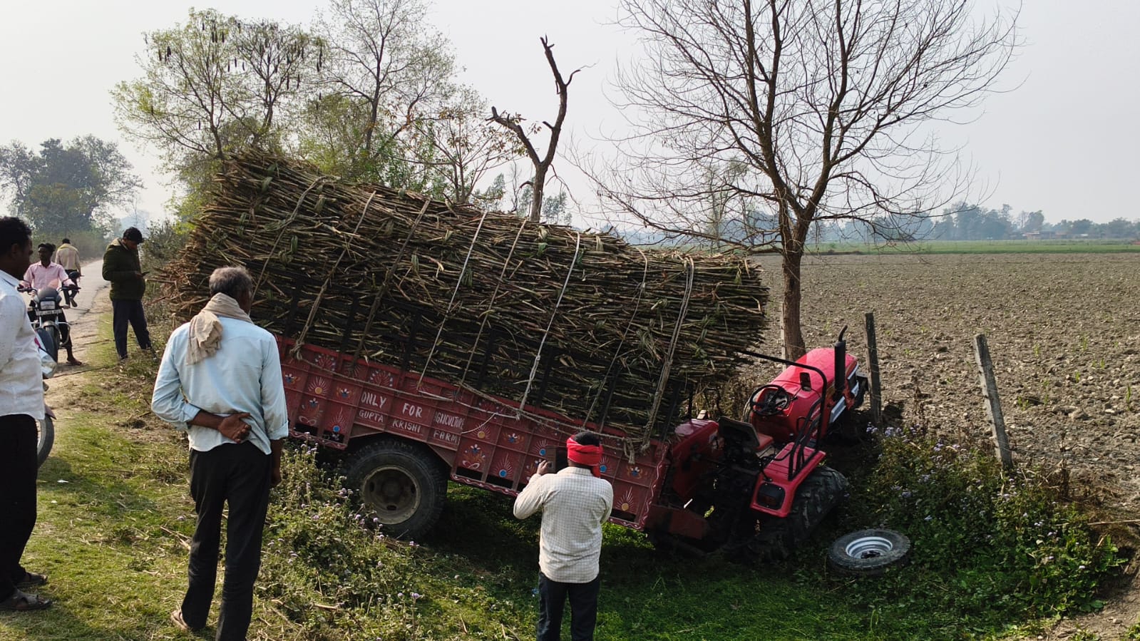 चफरिया से गन्ना क्रेशर की तरफ जा रहा था ट्रैक्टर ट्राली