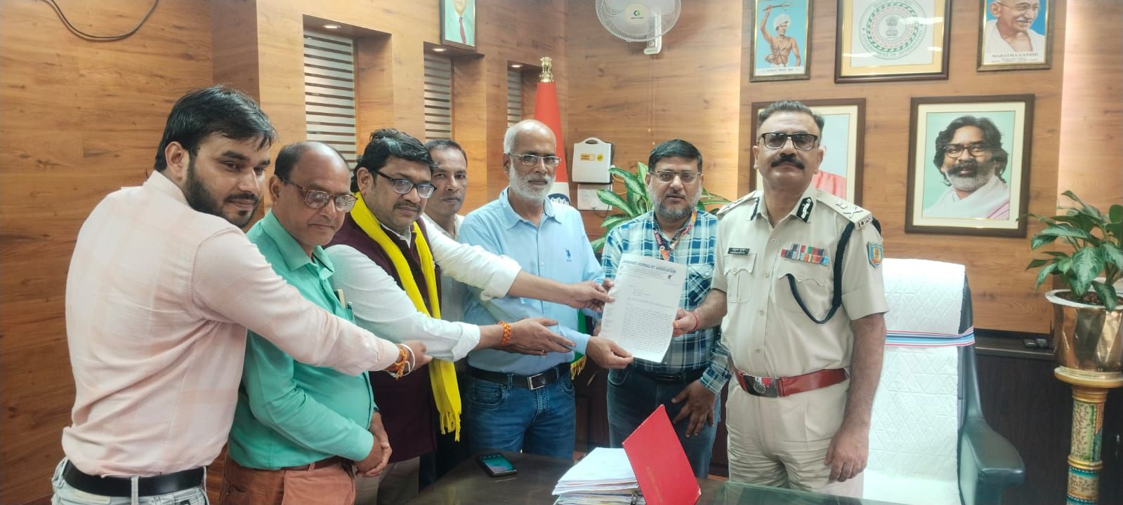 रांची: झारखण्ड जर्नलिस्ट एसोसियेशन का प्रतिनिधिमंडल प्रदेश अध्यक्ष संपूर्णा नंद भारती के नेतृत्व में झारखण्ड के डीजीपी अनुराग गुप्ता को मांग पत्र सौंपते हुए पत्रकारों की सुरक्षा सुशिक्षित करने की मांग की। ज्ञापन के माध्यम से कहा गया है कि “आप का ध्यान इस पत्र के माध्यम से पत्रकारों के विरुद्ध बढ़ते हमलों और झूठे मुकदमों को लेकर राज्य स्तर पर आवयश्क कार्रवाई हेतु प्रेषित की जा रही है।