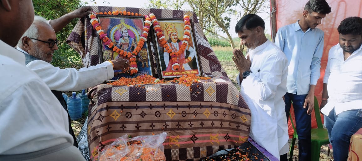 बहराइच रामगांव ।मुकेरिया 5 अप्रैल प्रथम बार मुकेरिया में आयोजित हुआ सम्राट अशोक महान की जयंती जिसमें मुख्य अतिथि के रूप में परशुराम कुशवाहा पहुंचे । पहुंचने के बाद परशुराम कुशवाहा ने सम्राट अशोक व चंद्रगुप्त मौर्य के फोटो को पुष्प अर्पित किया और उन्हें नमन किया और जयंती में पहुंचे सभी लोगों ने पुष्प अर्पित कर उन्हें नमन किया।