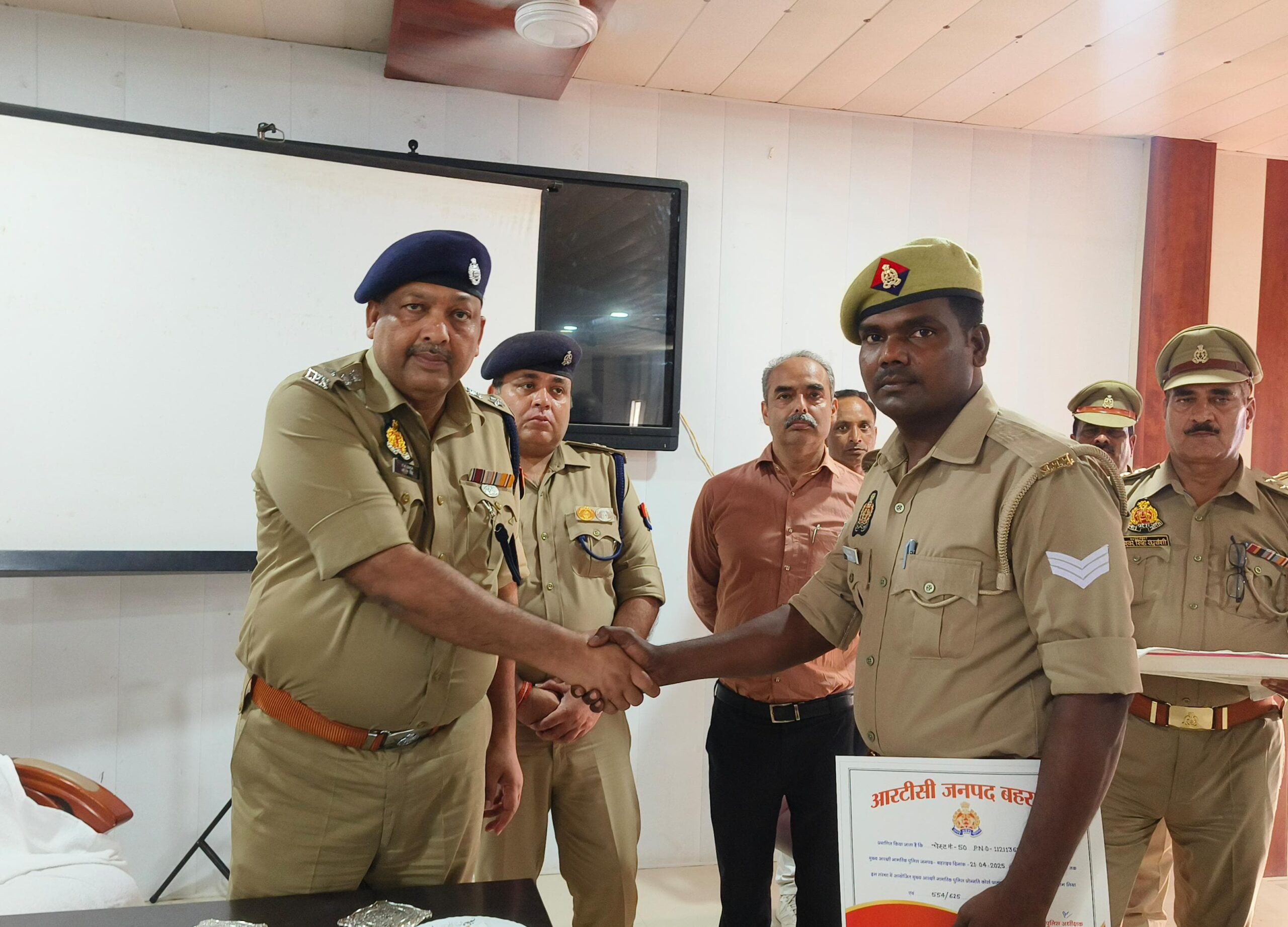 उत्कृष्ट प्रदर्शन करने वाले मुख्य आरक्षियों को किया सम्मानित तथा अपने पदीय कार्यों के प्रभावी निर्वहन हेतु किया प्रेरितआज दिनांक 20.05.2025 को पुलिस अधीक्षक महोदय द्वारा आरक्षी से मुख्य आरक्षी पद पर प्रोन्नति प्राप्त प्रशिक्षणाधीन 178 मुख्य आरक्षियों के प्रशिक्षण पूर्ण करने पर सभी मुख्य आरक्षियों को रिजर्व पुलिस लाइन प्रेक्षागृह में शुभकामनाएं दी गयीं, साथ ही परीक्षा में उत्कृष्ट प्रदर्शन करने वाले मुख्य आरक्षियों को सम्मानित भी किया गया ।