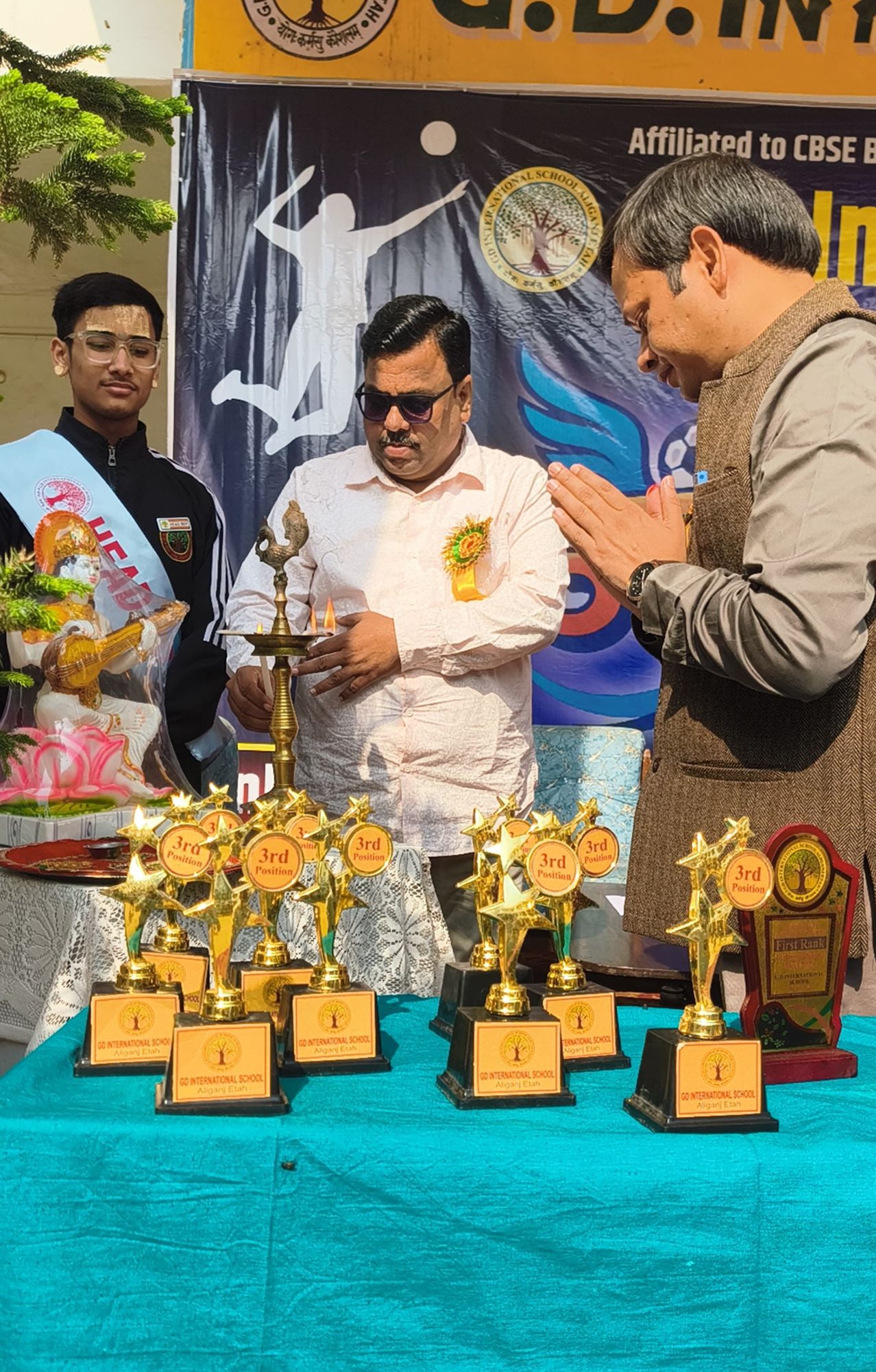 अलीगंज. अलीगंज के संस्थान जी० डी० इंटरनेशनल स्कूल में तीन दिवसीय वार्षिक खेल उत्सव का आयोजन शुभारम्भ किया गया | कार्यक्रम के प्रथम दिवस मुख्य अतिथि के रूप में अलीगंज उपजिलाधिकारी जग मोहन गुप्ता चार्टेड अकाउंटेंट अर्चित अग्रवाल विद्यालय के संस्थापक सुल्तान सिंह यादव उप प्रबंधक यश कुमार ने सयुंक्त रूप से दीप प्रज्ज्वलित कर खेल – कूद का आयोजन प्रारम्भ करवाया |