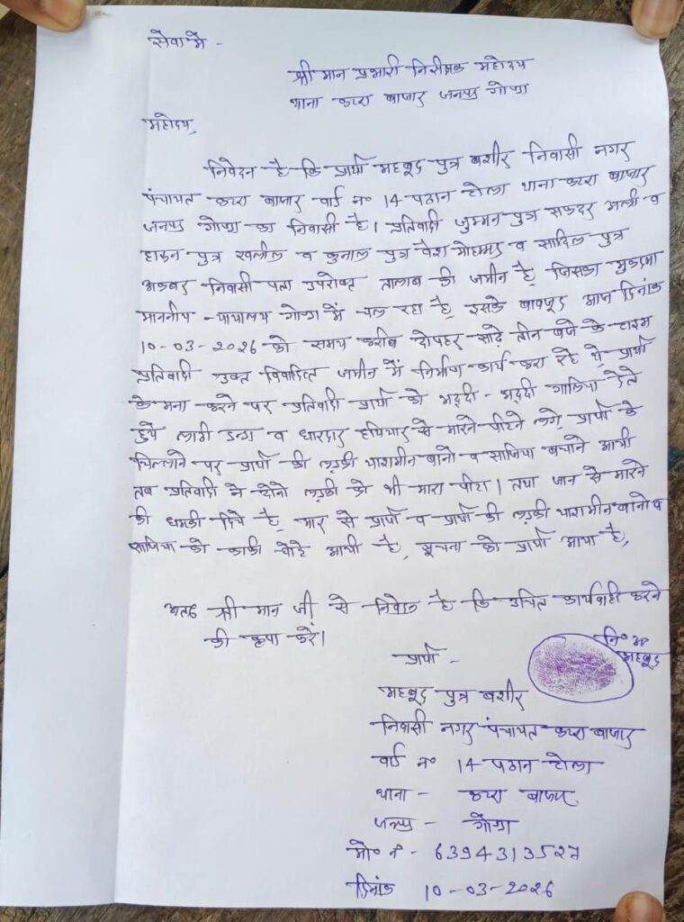 बताया जा रहा है कि पठान टोला में स्थित तालाब की सरकारी जमीन पर कुछ लोग अवैध निर्माण करा रहे थे। जब दूसरे पक्ष के लोगों ने इसे सरकारी भूमि बताते हुए निर्माण कार्य का विरोध किया, तो आरोप है कि दबंगों ने गाली-गलौज करते हुए ईंट-पत्थरों से जानलेवा हमला कर दिया। हमले में एक व्यक्ति का सिर फट गया, जबकि दो अन्य लोगों के हाथों में गंभीर चोटें आई हैं। पीड़ित पक्ष का आरोप है कि घटना की सूचना देने के बावजूद स्थानीय पुलिस ने उनका मेडिकल नहीं कराया और न ही आरोपियों के खिलाफ कोई कार्रवाई की।